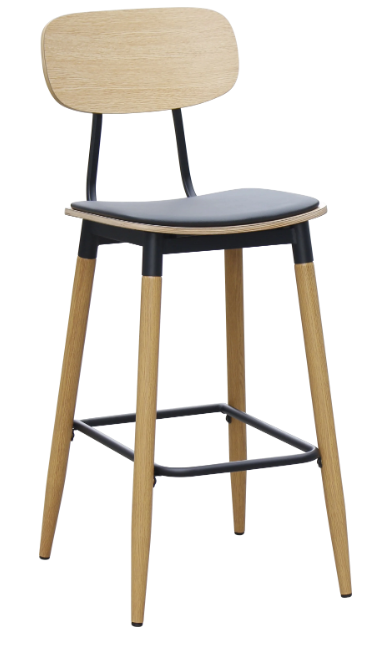 Brand: Durafurn Overall size: W500xD555xH1100 Seat Height: 750mm Steel Leg with wood finish Ply Back & Uph Seat 3 Year commercial Warranty SWL: 150kg