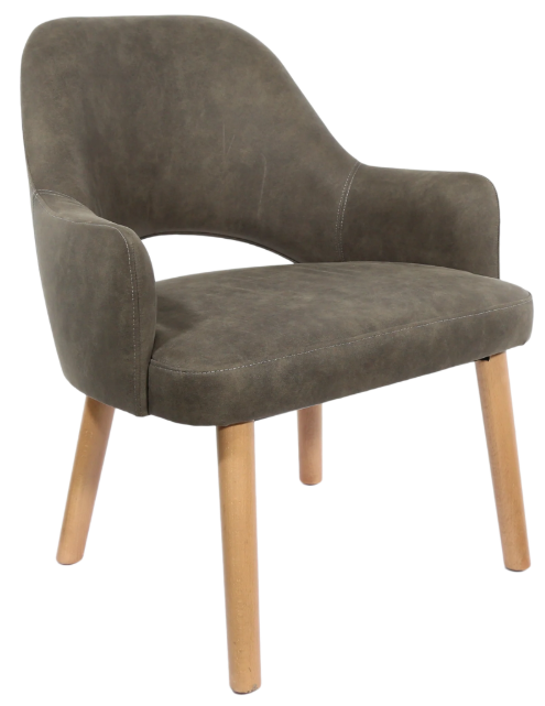 Durafurn BonBon Armchair - Trojan Oak Legs/ Taupe Vinyl Shell