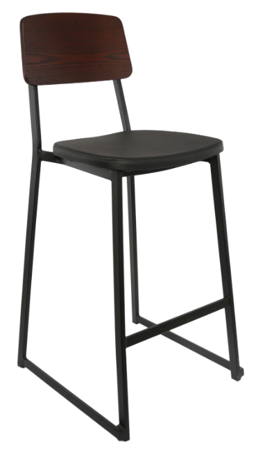 What sets the Denver Bar Stool apart is its customizable features: choose between a comfortable black vinyl seat pad and a backrest available in either vinyl or veneered plywood, allowing for personalized configurations that complement any interior décor
