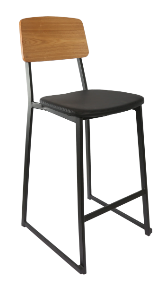 What sets the Denver Bar Stool apart is its customizable features: choose between a comfortable black vinyl seat pad and a backrest available in either vinyl or veneered plywood, allowing for personalized configurations that complement any interior décor