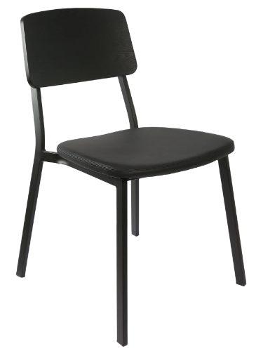 What sets the Denver Chair apart is its customizable features: a sleek black vinyl seat pad and the option of either vinyl or veneered plywood for the backrest, allowing for tailored configurations to suit individual preferences and interior themes