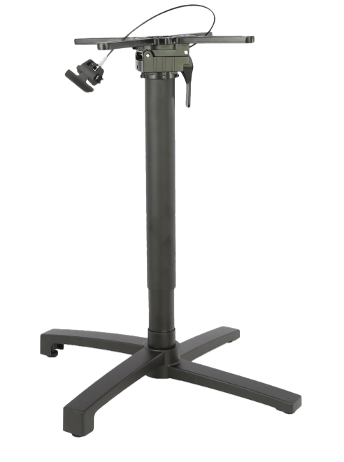 Enhance your dining space versatility with our Aluminium Folding Table Base featuring a Pneumatic function, offering a compact 670x670 footprint adjustable from 735mm to 1090mm, or opt for added mobility with optional Castors, adjustable from 790mm to 1150mm, accompanied by a sturdy 450x450 top cross and a sleek black powder-coated finish
