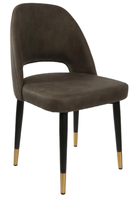 Made in Europe Brand: Durafurn 38mm steel tube with tapered leg Matt black powder coat with stainless steel, gold flec foot ring High quality foam & vinyl SWL:150kg 3-year warranty Stocked in (upholstery): Anthracite, Black & Taupe Vinyl - Anthracite, Light Grey & Navy Woven Fabric - Tan, Mocha & Charcoal Premium Vinyl - Avocado & Denim Velvet Stocked in (leg frame): Black Metal Legs with gold tips and footrail Suitable for indoor commercial application Dimensions: 840H x 520W 580D x 480 Seat Height Extensive selection of frame & upholstery choices available for custom orders Supplied unassembled