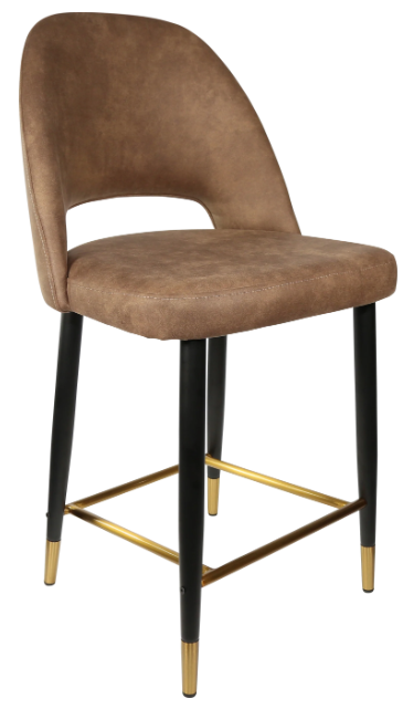Made in Europe Brand: Durafurn 38mm steel tube with tapered leg Matt black powder coat with stainless steel, gold flec foot ring High quality foam & vinyl SWL:150kg 3-year warranty Stocked in (upholstery): Anthracite, Black & Taupe Vinyl - Anthracite, Light Grey & Navy Woven Fabric - Tan, Mocha & Charcoal Premium Vinyl - Avocado & Denim Velvet Stocked in (leg frame): Black Metal Legs with gold tips and footrail Suitable for indoor commercial application Dimensions: 1040H x 520W 580D x 680 Seat Height Extensive selection of frame & upholstery choices available for custom orders Supplied unassembled