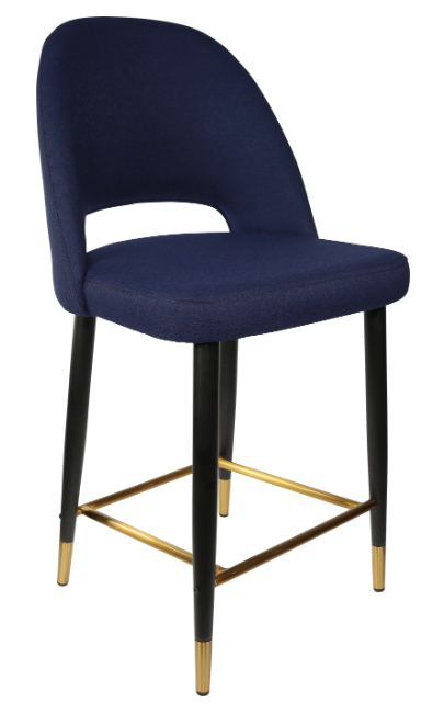 Made in Europe Brand: Durafurn 38mm steel tube with tapered leg Matt black powder coat with stainless steel, gold flec foot ring High quality foam & vinyl SWL:150kg 3-year warranty Stocked in (upholstery): Anthracite, Black & Taupe Vinyl - Anthracite, Light Grey & Navy Woven Fabric - Tan, Mocha & Charcoal Premium Vinyl - Avocado & Denim Velvet Stocked in (leg frame): Black Metal Legs with gold tips and footrail Suitable for indoor commercial application Dimensions: 1040H x 520W 580D x 680 Seat Height Extensive selection of frame & upholstery choices available for custom orders Supplied unassembled