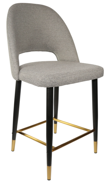 Made in Europe Brand: Durafurn 38mm steel tube with tapered leg Matt black powder coat with stainless steel, gold flec foot ring High quality foam & vinyl SWL:150kg 3-year warranty Stocked in (upholstery): Anthracite, Black & Taupe Vinyl - Anthracite, Light Grey & Navy Woven Fabric - Tan, Mocha & Charcoal Premium Vinyl - Avocado & Denim Velvet Stocked in (leg frame): Black Metal Legs with gold tips and footrail Suitable for indoor commercial application Dimensions: 1040H x 520W 580D x 680 Seat Height Extensive selection of frame & upholstery choices available for custom orders Supplied unassembled