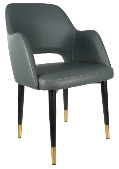 Made in Europe Brand: Durafurn 38mm steel tube with tapered leg Matt black powder coat with stainless steel, gold flec foot ring High quality foam & vinyl SWL:150kg 3-year warranty Stocked in (upholstery): Anthracite, Black & Taupe Vinyl - Anthracite, Light Grey & Navy Woven Fabric - Tan, Mocha & Charcoal Premium Vinyl - Avocado & Denim Velvet Stocked in (leg frame): Black Metal Legs with gold tips and footrail Suitable for indoor commercial application Dimensions: 820H x 570W 600D x 460 Seat Height Extensive selection of frame & upholstery choices available for custom orders Supplied unassembled