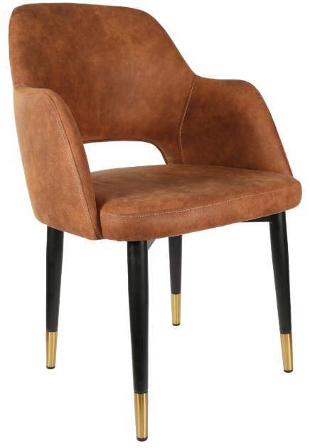 Made in Europe Brand: Durafurn 38mm steel tube with tapered leg Matt black powder coat with stainless steel, gold flec foot ring High quality foam & vinyl SWL:150kg 3-year warranty Stocked in (upholstery): Anthracite, Black & Taupe Vinyl - Anthracite, Light Grey & Navy Woven Fabric - Tan, Mocha & Charcoal Premium Vinyl - Avocado & Denim Velvet Stocked in (leg frame): Black Metal Legs with gold tips and footrail Suitable for indoor commercial application Dimensions: 820H x 570W 600D x 460 Seat Height Extensive selection of frame & upholstery choices available for custom orders Supplied unassembled