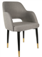 Made in Europe Brand: Durafurn 38mm steel tube with tapered leg Matt black powder coat with stainless steel, gold flec foot ring High quality foam & vinyl SWL:150kg 3-year warranty Stocked in (upholstery): Anthracite, Black & Taupe Vinyl - Anthracite, Light Grey & Navy Woven Fabric - Tan, Mocha & Charcoal Premium Vinyl - Avocado & Denim Velvet Stocked in (leg frame): Black Metal Legs with gold tips and footrail Suitable for indoor commercial application Dimensions: 820H x 570W 600D x 460 Seat Height Extensive selection of frame & upholstery choices available for custom orders Supplied unassembled