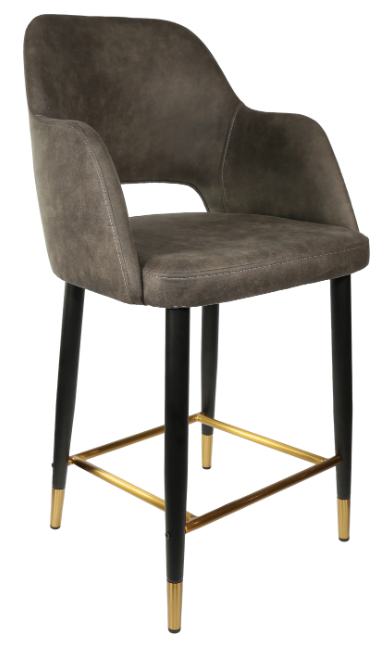 Made in Europe Brand: Durafurn 38mm black powdered steel tube with tapered leg Gold flec stainless steel foot ring High quality foam & vinyl SWL:150kg 3-year warranty Stocked in (upholstery): Anthracite, Black & Taupe Vinyl - Anthracite, Light Grey & Navy Woven Fabric - Tan, Mocha & Charcoal Premium Vinyl - Avocado & Denim Velvet Stocked in (leg frame): Black Metal Legs with gold tips and footrail Suitable for indoor commercial application Dimensions: 950H x 570W 600D x 645 Seat Height Extensive selection of frame & upholstery choices available for custom orders Supplied unassembled