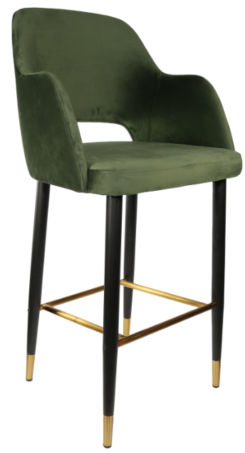 Made in Europe Brand: Durafurn 38mm black powdered steel tube with tapered leg Gold flec stainless steel foot ring High quality foam & vinyl SWL:150kg 3-year warranty Stocked in (upholstery): Anthracite, Black & Taupe Vinyl - Anthracite, Light Grey & Navy Woven Fabric - Tan, Mocha & Charcoal Premium Vinyl - Avocado & Denim Velvet Stocked in (leg frame): Black Metal Legs with gold tips and footrail Suitable for indoor commercial application Dimensions: 1050H x 570W 600D x 745 Seat Height Extensive selection of frame & upholstery choices available for custom orders Supplied unassembled