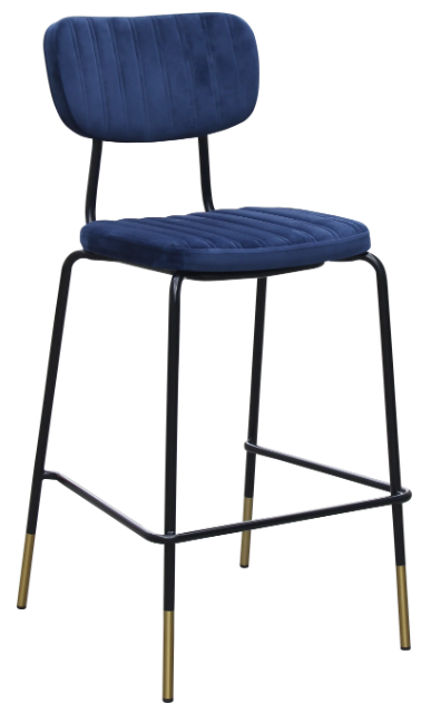 Durafurn Tiramisu Barstool - Black Frame with Brass Tip / Denim Velvet