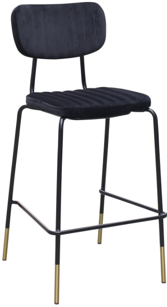 Durafurn Tiramisu Barstool - Black Frame with Brass Tip / Black Velvet
