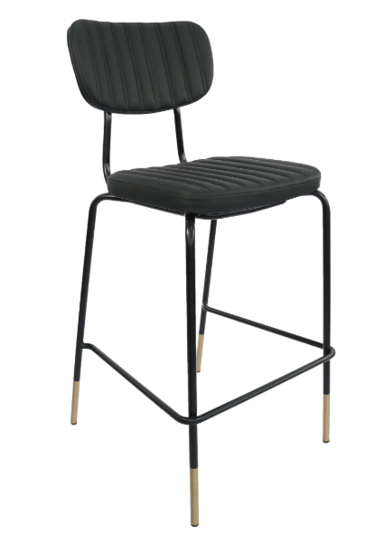 Durafurn Tiramisu Barstool - Black Frame with Brass Tip / Black Vinyl
