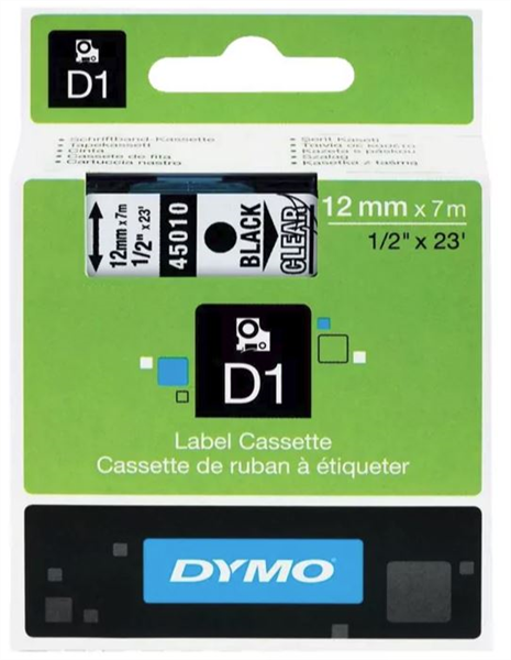 Dymo D1 Label Tape Black on Clear 12mm x 7m Each