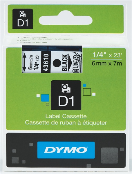 Dymo D1 Label Tape Black on Clear 6mm x 7m Each