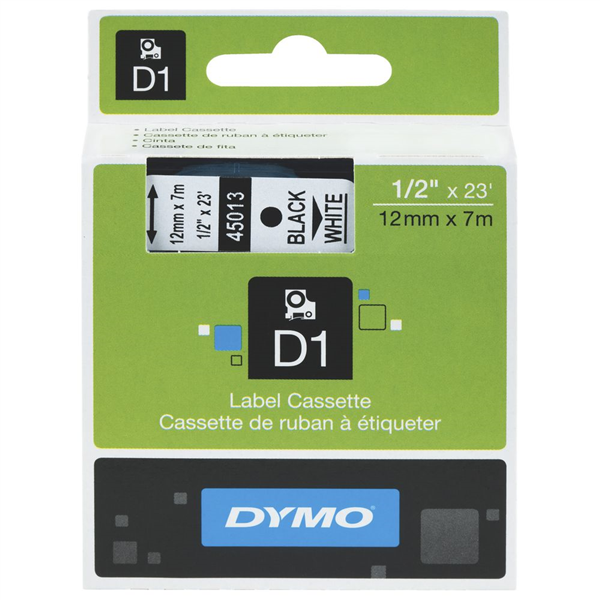 Dymo D1 Label Tape Black on White 12mm x 7m Each