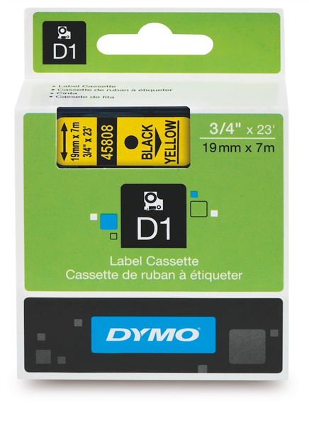 Dymo D1 Label Tape Black on Yellow 19mm x 7m Each