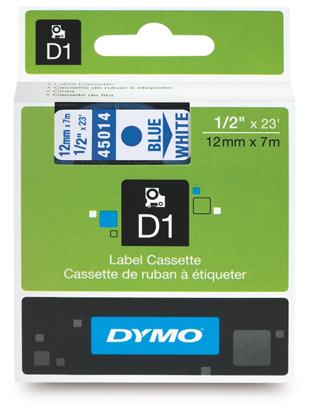 Dymo D1 Label Tape Blue on White 12mm x 7m Each