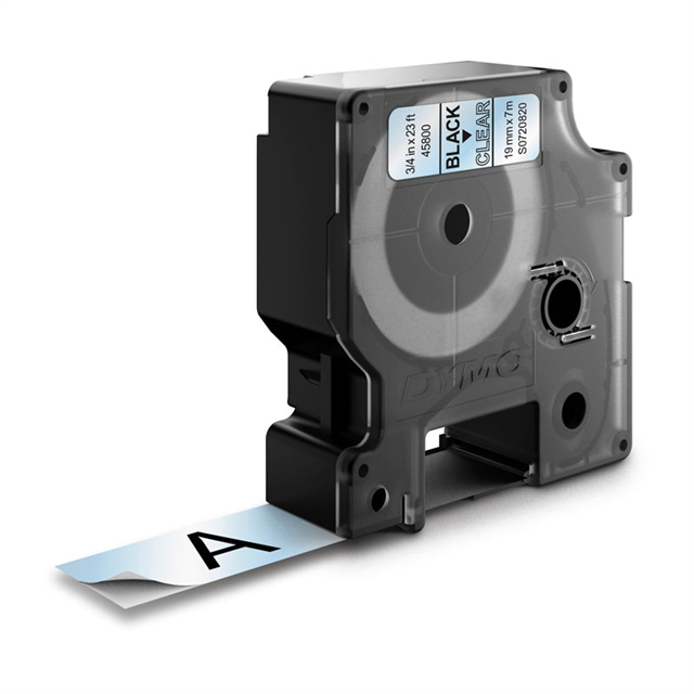 Dymo Label Tape Black on Clear 19mm x 7m Each