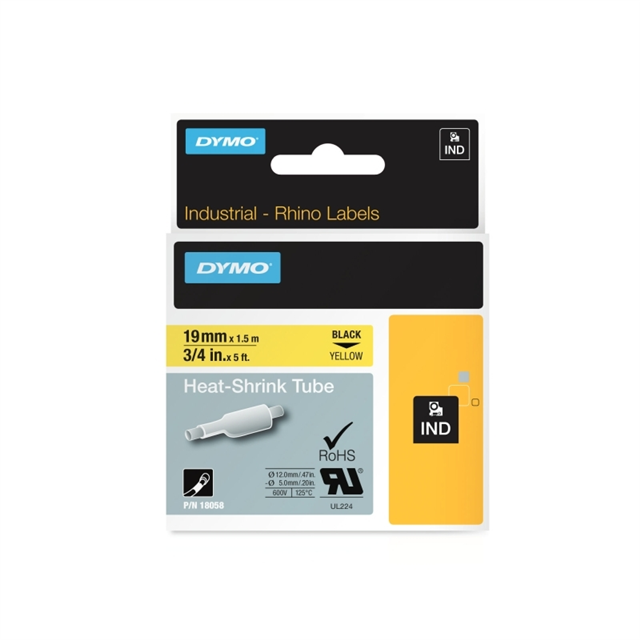 DYMO Rhino Heat Shrink Tube Label 19mm Yellow are made of industrial grade polyolefin and feature a 3:1 heat shrink ratio