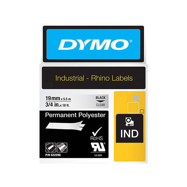 Dymo Rhino Permanent Polyester Tape 19mm Clear for labeling panels, blocks, faceplates, shelves, bins, beams and more
