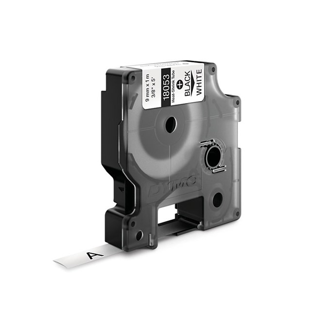 Dymo Rhino Indstrial Heat Shrink Tube 9mm Blk/Wht is made of industrial grade polyolefin and features a 3:1 heat shrink ratio for printing on tubing