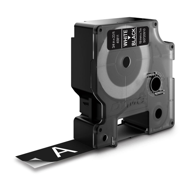 Dymo Tape White on Black 19mm x 7m Each