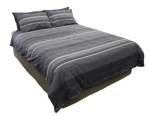 The Elka Quilt Cover Set Range by Alliance features a contrasting printed stripe pattern
