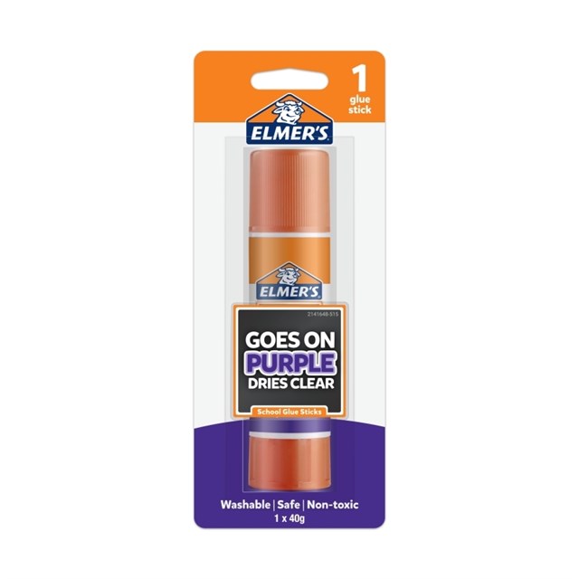 Elmers Purple Disappearing Glue Sticks 50g Bx6 is easy to see when applying, but dries fast and colourless