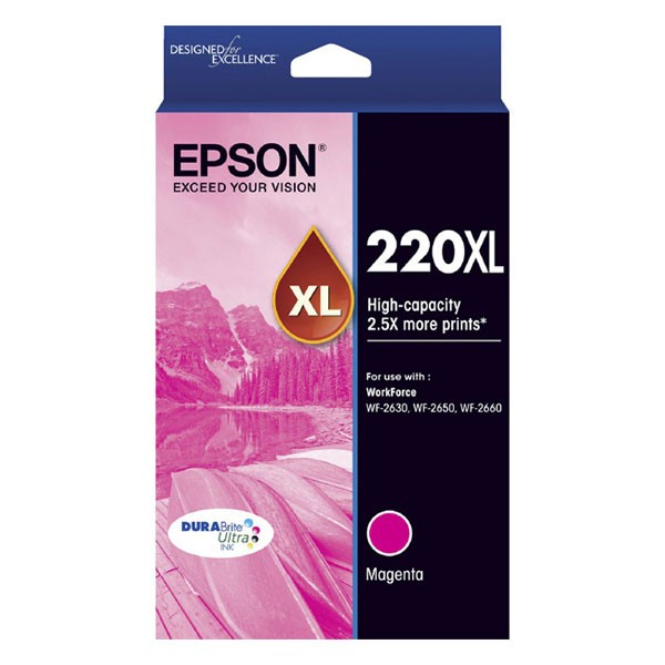 This is a genuine Epson #220 HY Magenta Ink Cartridge – it has been designed to work with a range of Epson printers, details of which are provided below