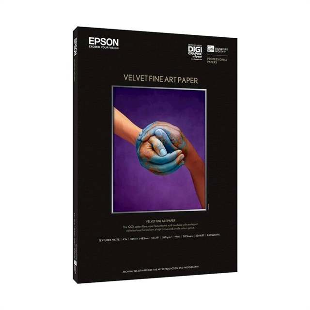 Epson S041637 Velvet Paper A3+ is a premium quality paper designed for producing stunning, high-resolution prints with a luxurious velvet finish