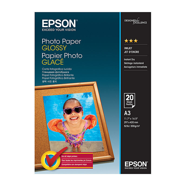 Photo Paper Glossy A3 200gsm 20 Sheets delivers a smooth, glossy finish for great looking photos and projects