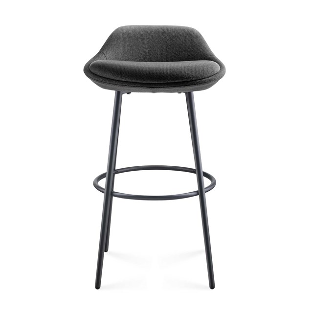 The Eros Bar Stool features a comfortable fabric seat and a robust, powder-coated base with a footrest for added support