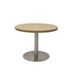 Estilo 600mm Dia Coffee Table - Natural Oak Table Top 400mm Dia Disc Base Plate x 450mm H Overall Base Finished In Stainless Steel Adjustable Levelling Feet E0 Enviroboard Suitable For Indoor Use 5 Year Warranty