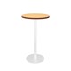 Estilo 600mm Dai Dry Bar Table - Beech Table Top 450mm Dia Disc Base Plate x 1050mm H Overall Base Finished In White Powder Coat Adjustable Levelling Feet E0 Enviroboard Suitable For Indoor Use 5 Year Warranty