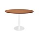 Estilo 1200mm Dia Round Table - Cherry Table Top 720mm Dia Disc Base Plate x 755mm H Overall Base Finished In White Powder Coat Adjustable Levelling Feet E0 Enviroboard Suitable For Indoor Use 5 Year Warranty