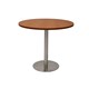 Estilo 900mm Dia Round Table - Cherry Table Top 540mm Dia Disc Base Plate x 755mm H Overall Base Finished In Stainless Steel Adjustable Levelling Feet E0 Enviroboard Suitable For Indoor Use 5 Year Warranty