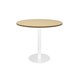 Estilo 900mm Dia Round Table - Natural Oak Table Top 540mm Dia Disc Base Plate x 755mm H Overall Base Finished In White Powder Coat Adjustable Levelling Feet E0 Enviroboard Suitable For Indoor Use 5 Year Warranty