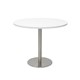 Estilo 900mm Dia Round Table - Natural White Table Top 540mm Dia Disc Base Plate x 755mm H Overall Base Finished In Stainless Steel Adjustable Levelling Feet E0 Enviroboard Suitable For Indoor Use 5 Year Warranty