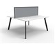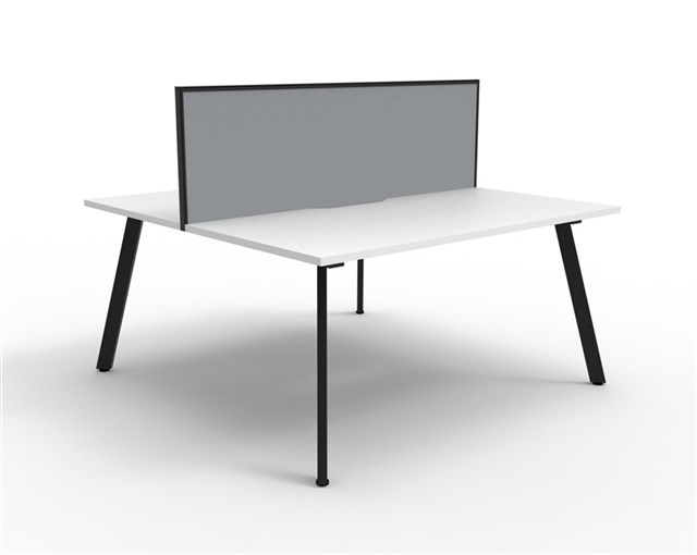 Eternity 2 Person Double Sided Workstation - With Screen Natural White Worksurface With 410mm W x 50mm D Scallop Cable Access 1200mm W x 1530mm D x 1200mm H ( Overall ) 1200mm W x 750mm D x 730mm H Per User 60mm x 30mm Splayed Leg Underframe In Black P/C 495mm H x 30mm T Pinnable Privacy Screen Upholstered In Grey Fabric With Matching Black P/C Extrusion Dual Cross Bar For Added Stability E0 Enviroboard Melamine Worksurface Adjustable leveling Feet 5 Year Warranty AFRDI Certified