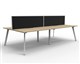 Eternity 4 Person Double Sided Workstation - With Screen Natural Oak Worksurface With 410mm W x 50mm D Scallop Cable Access 2400mm W x 1530mm D x 1200mm H ( Overall ) 1200mm W x 750mm D x 730mm H Per User 60mm x 30mm Splayed Leg Underframe In White P/C 495mm H x 30mm T Pinnable Privacy Screen Upholstered In Black Fabric With Matching White P/C Extrusion Dual Cross Bar For Added Stability E0 Enviroboard Melamine Worksurface Adjustable leveling Feet 5 Year Warranty AFRDI Certified