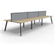 Eternity 6 Person Double Sided Workstation - With Screen Natural Oak Worksurface With 410mm W x 50mm D Scallop Cable Access 4500mm W x 1530mm D x 1200mm H ( Overall ) 1500mm W x 750mm D x 730mm H Per User 60mm x 30mm Splayed Leg Underframe In Black P/C 495mm H x 30mm T Pinnable Privacy Screen Upholstered In Grey Fabric With Matching Black P/C Extrusion Dual Cross Bar For Added Stability E0 Enviroboard Melamine Worksurface Adjustable leveling Feet 5 Year Warranty AFRDI Certified