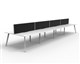 Eternity 8 Person Double Sided Workstation - With Screen Natural White Worksurface With 410mm W x 50mm D Scallop Cable Access 7200mm W x 1530mm D x 1200mm H ( Overall ) 1800mm W x 750mm D x 730mm H Per User 60mm x 30mm Splayed Leg Underframe In White P/C 495mm H x 30mm T Pinnable Privacy Screen Upholstered In Black Fabric With Matching White P/C Extrusion Dual Cross Bar For Added Stability E0 Enviroboard Melamine Worksurface Adjustable leveling Feet 5 Year Warranty AFRDI Certified