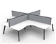 Eternity 4 Person Corner Workstation POD With Screens Natural White Worksurface With 80mm Dia Cable Entry hole 3630mm W x 3630mm D x 1200mm H ( Overall ) 1800mm x 1800mm x 750mm D x 730mm H Per User 60mm x 30mm Splayed Leg Underframe In Black P/C 495mm H x 30mm T Pinnable Privacy Screen Upholstered In Grey Fabric With Matching Black P/C Extrusion Dual Cross Bar For Added Stability E0 Enviroboard Melamine Worksurface Adjustable leveling Feet 5 Year Warranty AFRDI Certified