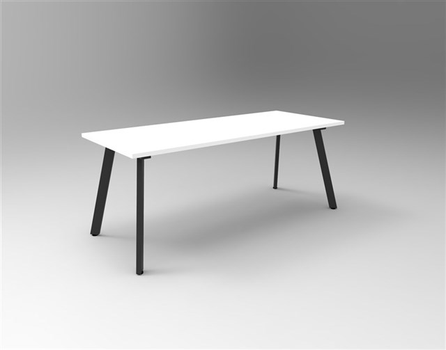 Eternity Meeting Table 25mm T Natural White Worksurface 1800mm W x 750mm D x 730mm H 60mm x 30mm Splayed Leg Underframe In Black P/C Dual Cross Bar For Added Stability E0 Enviroboard Melamine Worksurface 2mm Steel Gauge Adjustable leveling Feet 5 Year Warranty