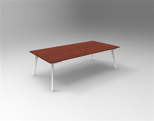 Eternity Meeting Table 25mm T Appletree Worksurface 2400mm W x 1200mm D x 730mm H 60mm x 30mm Splayed Leg Underframe In White P/C Dual Cross Bar For Added Stability E0 Enviroboard Melamine Worksurface 2mm Steel Gauge Adjustable leveling Feet 5 Year Warranty