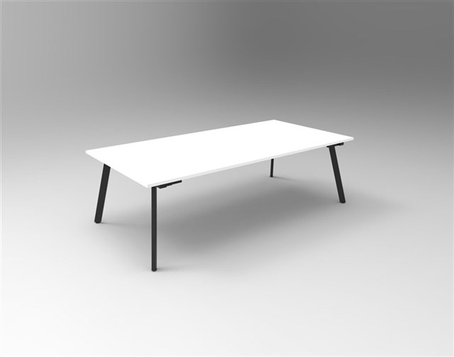 Eternity Meeting Table 25mm T Natural White Worksurface 2400mm W x 1200mm D x 730mm H 60mm x 30mm Splayed Leg Underframe In Black P/C Dual Cross Bar For Added Stability E0 Enviroboard Melamine Worksurface 2mm Steel Gauge Adjustable leveling Feet 5 Year Warranty