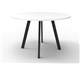 Eternity Round Meeting Table 1200mm Dia x 730mm H Natural White Worksurface Matching Rigid Edge 60mm x 30mm Splayed Leg Underframe In Black P/C Fully Welded Top Plate For Added Stability 25mm T E0 Enviroboard Melamine Worksurface Adjustable leveling Feet 5 Year Warranty