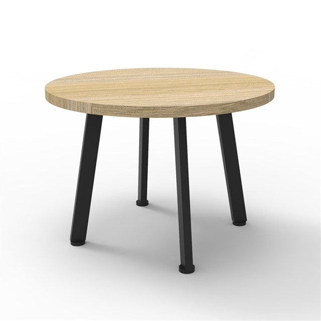 Eternity Round Coffee Table - Natural Oak / Black 600mm Dia x 450mm H 25mm T Natural Oak Table Top With Matching Rigid Edge 60mm x 30mm Splayed Leg Underframe In Black P/C E0 Enviroboard Melamine Table Top 2mm Steel Gauge To Leg Set Adjustable leveling Feet 5 Year Warranty